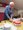 Ein Mann hält ein Päckchen in der rechten Hand am gestreckten Arm während er eine Erste-Hilfe-Set in der Linken hält. Eine größere Gruppe folgt gespannt.
